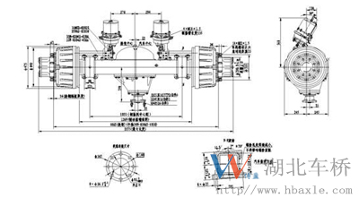 2401N122-010-4.11主減速器總成噪音低,傳遞扭矩大。其突緣端面至橋殼中心線距離為390mm(見(jiàn)如下安裝尺寸圖)。主從動(dòng)錐齒輪有噪音低、壽命長(zhǎng)的特點(diǎn),其傳遞扭矩30000N.M,裝配成總成后噪音在84dB以下,壽命可達(dá)70萬(wàn)次以上。